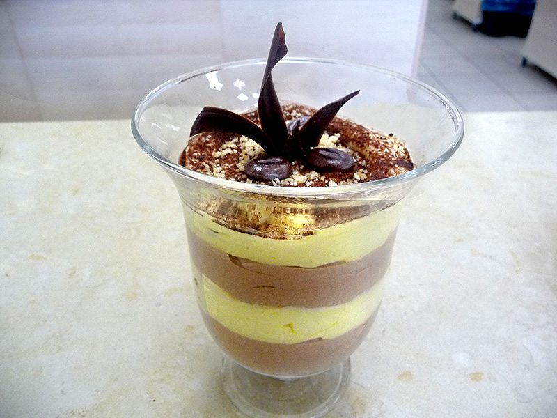 DESSERT CORSO DI PASTICCERIA | CIOCCOSÙ Ingredienti – 3 uova di medie dimensioni – 500 gr di mascarpone – 140 gr di zucchero a velo – 200 gr di crema alla nocciola – Pavesini q.b. – Caffè: quanto basta – Cioccolato fondente: 100 gr – Granella di nocciole