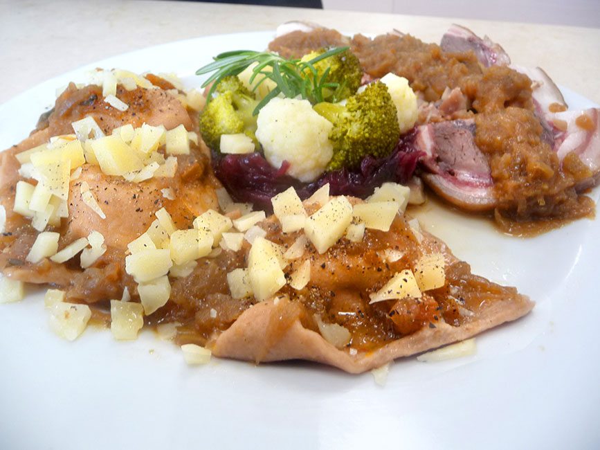 CORSO CUCINA | PRIMO PIATTO CORSO CUCINA| GENOVESE NAPOLETANA – RAVIOLI DI FARINA DI CASTAGNA, RICOTTA, MASCARPONE E PECORINO DI DARIO D’AVINO DIPLOMATO CORSO DI CHEF PROFESSIONISTA INGREDIENTI PER 4 PERSONE: