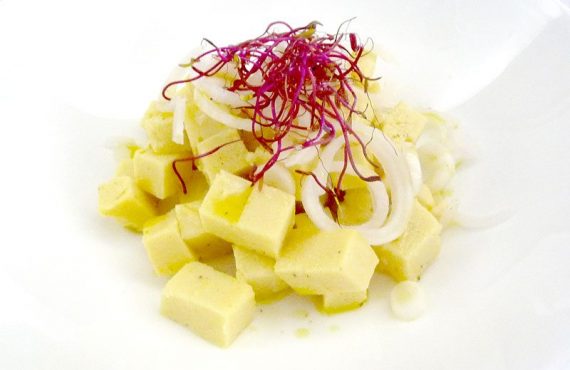 CORSO DI CUCINA |PRIMO PIATTO PANISSA CON CIPOLLOTTO DI GABRIELE SPINOSI DIPLOMATO CORSO DI CUOCO PROFESSIONISTA INGREDIENTI PER 4 PERSONE: – 70 gr di farina di ceci – 230 gr acqua – 1 cipollotto