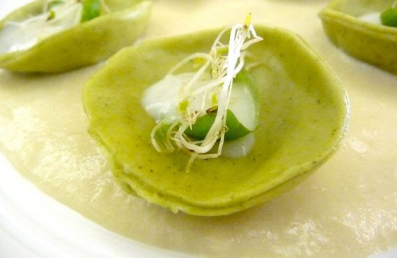 CORSO CUCINA | PRIMO PIATTO RAVIOLI AL BASILICO CON RIPIENO GENOVESE SU CREMA DI PINOLI DI GABRIELE SPINOSI DIPLOMATO CORSO DI CUOCO PROFESSIONISTA INGREDIENTI PER 4 PERSONE: Ingredienti per il