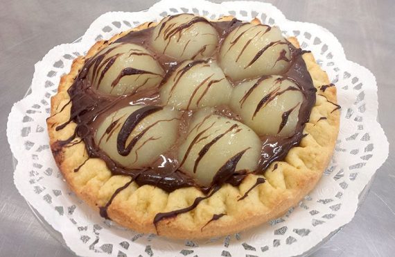 DESSERT CORSO PASTICCERE | CROSTATA PERE E CIOCCOLATO Ingredienti Ingredienti per la pasta frolla – 500 g farina 00 – 250 g burro – 250 g zucchero – 100 g tuorlo d’ uovo – 1 uovo intero – 1 bustina vanillina – 5 g sale –