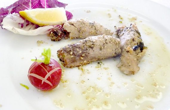 SECONDO PIATTO CORSO DI CUOCO | RICETTA PESCE SPADA “ALLA TERRONA” Ingredienti per 4 persone – 800 gr di pesce spada – olive – acciughe – prezzemolo – pangrattato – olio – aglio – sesamo. PROCEDIMENTO PER LA PREPARAZIONE Tagliare il pesce spada a fette, schiacciarlo con