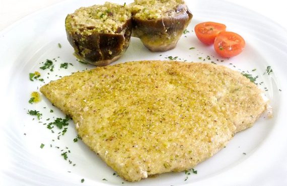SECONDO PIATTO E CONTORNO CORSO CUCINA | PESCE SPADA AL PROFUMO MEDITERRANEO CON CARCIOFI FARCITI Ingredienti per 4 persone Ingredienti per la preparazione del pesce spada – 4 tranci di spada da 150 g ciascuno – 150 g di pane grattugiato –