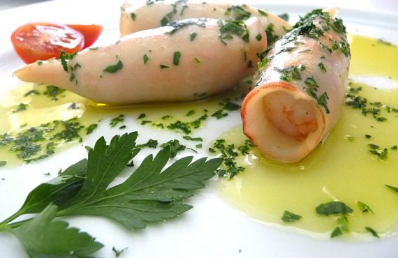 ANTIPASTO CORSO CUCINA | CALAMARI RIPIENI Ingredienti per 4 persone – 8 calamari medi – 400 g gamberetti sgusciati – 2 dl di vino bianco secco – 1 cipolla – 2 spicchi d’aglio – 1 costa di sedano – 1 limone biologico – Prezzemolo – Pepe in grani – Olio