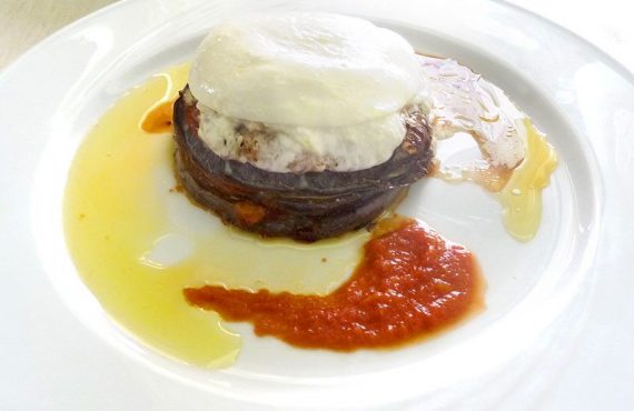 ANTIPASTO CORSO CUCINA | SFORMATINO DI PARMIGIANA DI MELANZANE Ingredienti per 4 persone – 2 melanzane – 200 g di grana grattugiato – 200 ml di passata di pomodoro – olio extravergine di oliva – 2 burrate divise a metà PROCEDIMENTO PER LA PREPARAZIONE Tagliare