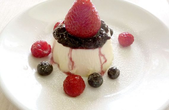 DESSERT CORSO PER PASTICCERE | PANNA COTTA CON FRUTTI DI BOSCO Ingredienti per 4 persone – 400 ml di panna fresca – 3 foglie di colla di pesce – 50 g di zucchero – 200 g mix frutti di bosco PROCEDIMENTO PER LA