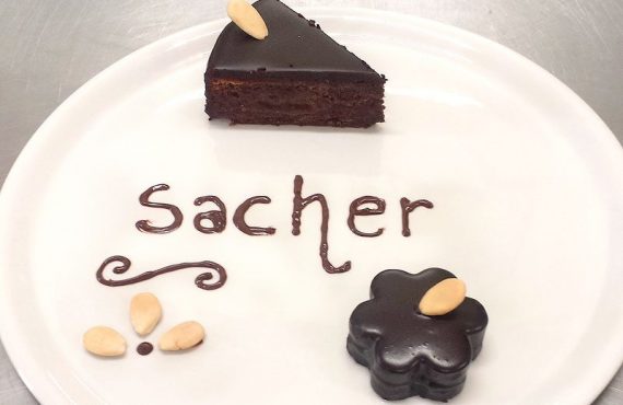 DESSERT CORSO DI PASTICCERE | MINI SACHER ALLE MANDORLE Ingredienti per il biscotto – 200 g. di burro morbido – 200 g. di cioccolato fondente – 300 g. di tuorlo – 125 g. di uova – 75 g. di zucchero semolato – 25 g. di miele –