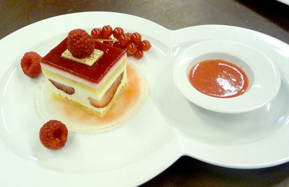 DESSERT CORSO DI PASTICCERE | SUPREMA DI FRAGOLE CON CREMA MADAME AROMATIZZATA ALLA VANIGLIA SU SPECCHIO DI GELATINA E SPUMA DI FRAGOLE Ingredienti per 4 persone – fragole fresche – crema madame – pan di spagna – gelatina – zucchero semolato – 1 limone – 2 bustine