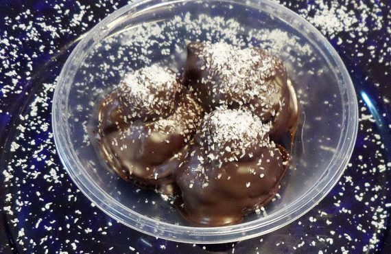 DESSERT CORSO PASTICCERE | PROFITEROLES CON CREMA AL COCCO Ingredienti – 150 ml d’acqua – 80 g di farina – 50 g di burro – 2 uova – un pizzico di sale – 100 g di cioccolato fondente – 50 g di farina di cocco – un