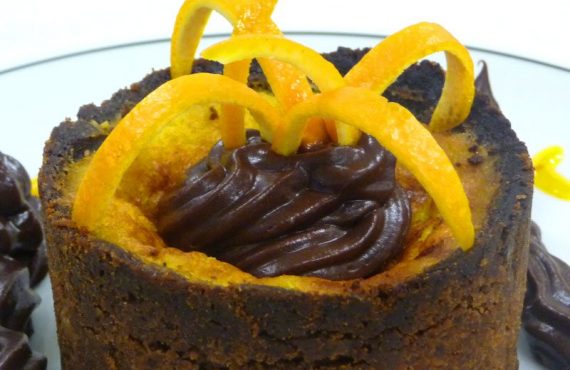 CORSO PASTICCERE | DESSERT TORTINO ALL’ARANCIA CON GANACHE AL FONDENTE Ingredienti: Per la Frolla: – 200 gr farina “00” – 125 gr burro – 75 gr zucchero – n°2 cucchiaini di cacao amaro Per la Crema: – n°2 tuorli d’uovo – n°3 arance – n°5