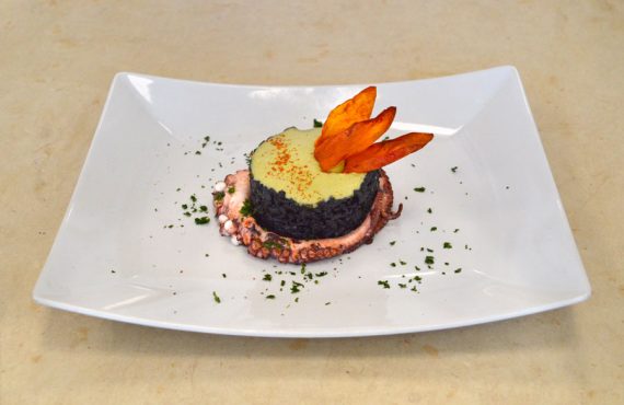 CORSO DI CUOCO PROFESSIONISTA | PRIMO PIATTO RISOTTO AL NERO DI SEPPIA SU VELLUTATA DI PISELLI E POLPO DI CATALDO CURTI DIPLOMATO DEL CORSO