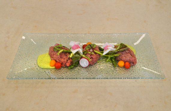 TARTARE DI MANZO SU LETTO DI CREMA DI ASPARAGI