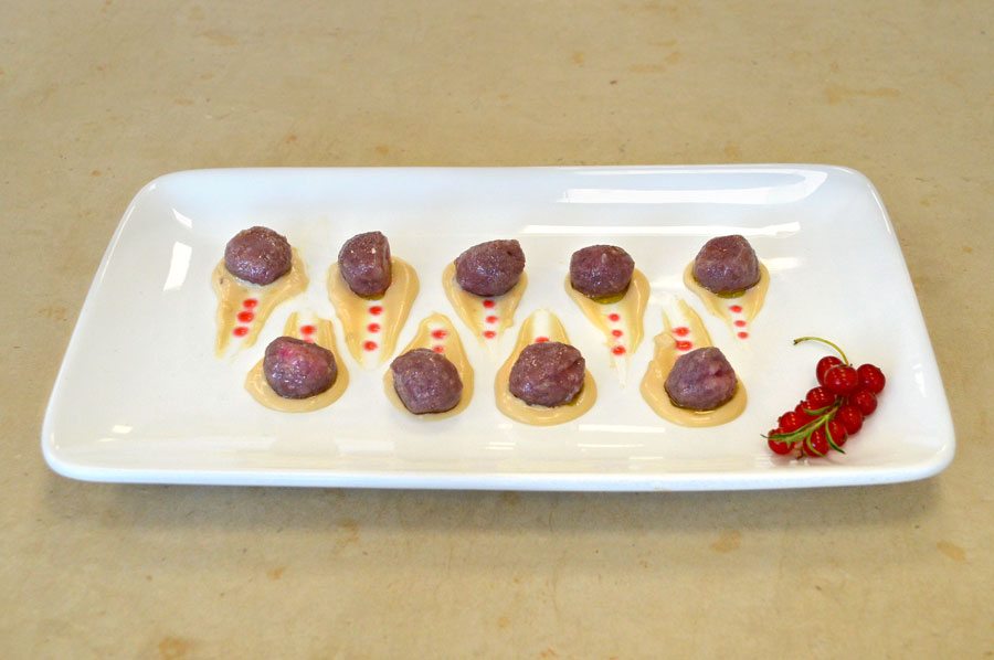 CORSO DI CUOCO PROFESSIONISTA | PRIMO PIATTO GNOCCHI DI PATATE VIOLA CON RIPIENO DI RIBES E CREMA DI FORMAGGIO DI NICCOLÒ FERRETTI DIPLOMATO DEL