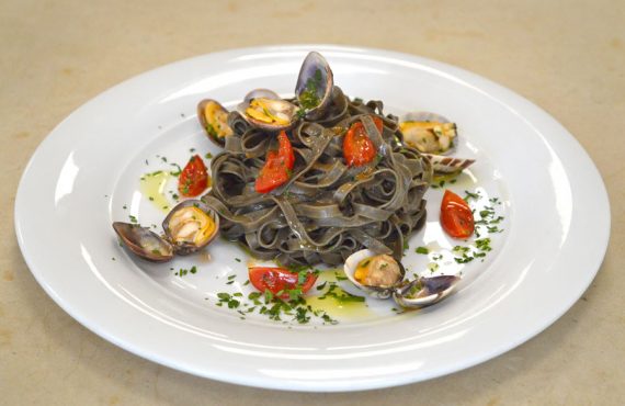 TAGLIOLINI AL NERO DI SEPPIA CON VONGOLE VERACI
