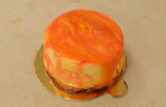 TORTA CON BISCUIT AL CACAO, ZENZERO, GELATINA ALL’ARANCIA E GLASSA