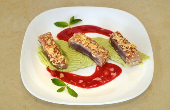 TONNO IN CROSTA DI MANDORLE SU CREMA DI AVOCADO