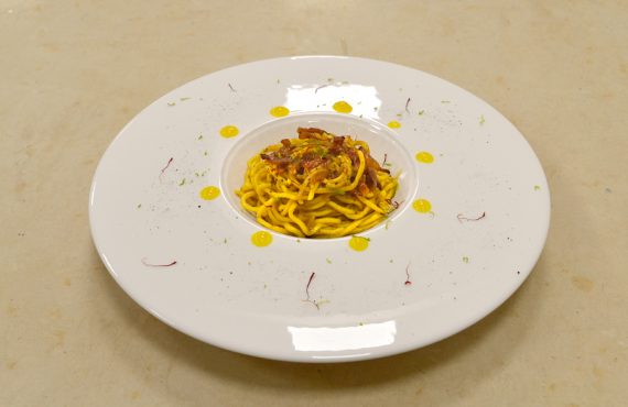CORSO DI CUOCO PROFESSIONISTA | PRIMO PIATTO SPAGHETTI ALLA CHITARRA CON ZAFFERANO E GUANCIALE DI PIERLUIGI ANTONUCCI DIPLOMATO DEL CORSO DI CUOCO PROFESSIONISTA INGREDIENTI