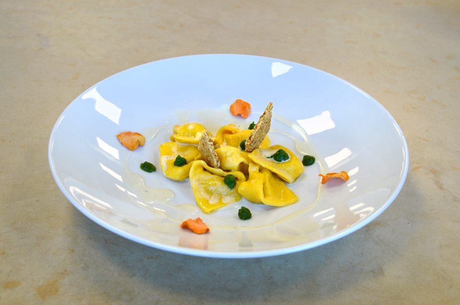 CORSO DI CUCINA PROFESSIONALE | PRIMO PIATTO BOTTONI AI GAMBERI SU SALSA ALLE ERBE E ARIA AL PARMIGIANO DI SIMONE MARTELLA DIPLOMATO DEL CORSO DI CUCINA