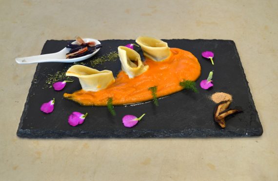 RAVIOLI RIPIENI CON BRANZINO SU PASSATA DI CAVOLO NERO