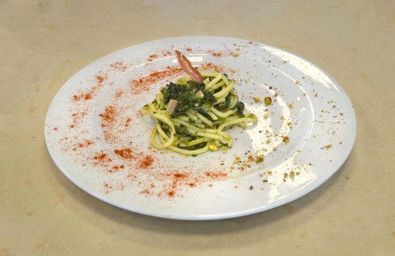 CORSO PER CUOCO PROFESSIONISTA | PRIMO PIATTO PICI CON PANCETTA, BROCCOLETTI, GRANELLA DI PISTACCHIO E PECORINO ROMANO CON SPOLVERATA DI PAPRIKA DOLCE. DI GIAN LUCA