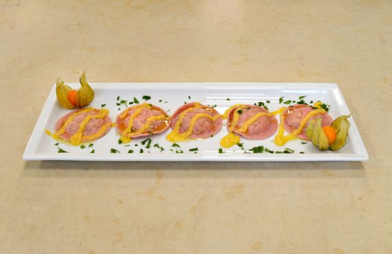 CORSO DI CUCINA PROFESSIONALE | PRIMO PIATTO RAVIOLI ROSA CON IMPASTO DI RAPA ROSSA E RIPIENO DI SCAMPI DI DAVIDE GUERRINI DIPLOMATO DEL CORSO DI CUCINA PROFESSIONALE