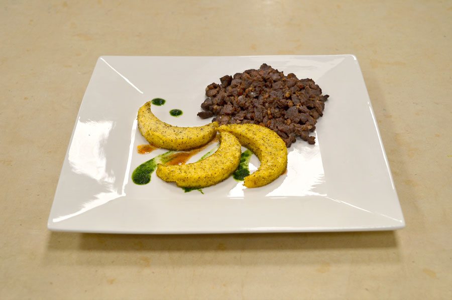 CORSO DI CUCINA PROFESSIONALE | PRIMO PIATTO TAPULONE DI CARNE DI ASINO CON SPICCHI DI LUNA DI POLENTA DI TATIANA TSYBAKOVA DIPLOMATA DEL CORSO DI CUCINA PROFESSIONALE
