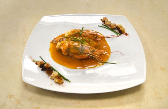 BISQUE DI GAMBERI UBRIACHI CON CROSTINI INTEGRALI ALLA PAPRIKA