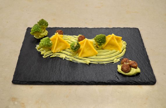 CORSO DI CUCINA PROFESSIONALE | PRIMO PIATTO RAVIOLI CACIO E PEPE, FORMA PIRAMIDALE DI ALESSANDRO PUCCIATTI DIPLOMATO DEL CORSO DI CUCINA PROFESSIONALE INGREDIENTI