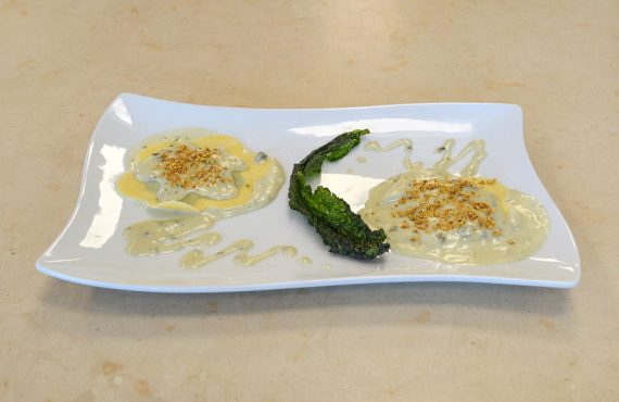 CORSO DI CUCINA PROFESSIONALE | PRIMO PIATTO RAVIOLO AL CAVOLO NERO ADDORMENTATO IN BLUE DI MONTE E FRASTUCA DI VALENTINA BADIANI DIPLOMATA DEL CORSO DI CUCINA