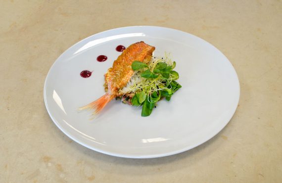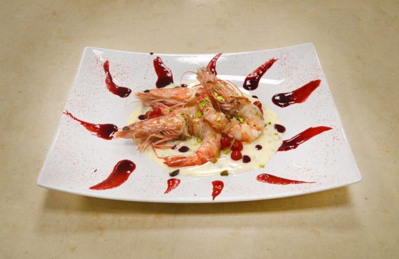 MAZZANCOLLE LARDELLATE SU CREMA DI GORGONZOLA E FRUTTI DI BOSCO