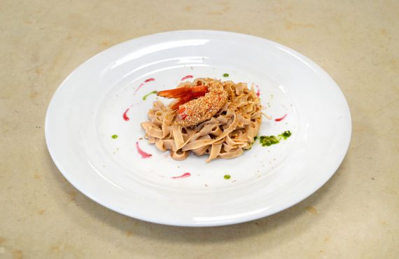 CORSO DI CUOCO PROFESSIONISTA | PRIMO PIATTO TAGLIATELLA DI CASTAGNE CON GAMBERO ROSSO, GUARNITA CON SALVIA E MELAGRANA DI ELENA BERNARDINI DIPLOMATA AL CORSO DI CUOCO PROFESSIONISTA INGREDIENTI PER 4