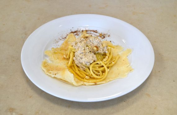 CORSO DI CUOCO PROFESSIONISTA | PRIMO PIATTO BIGOLI CON SUGO DI NOCI IN CESTINO DI PARMIGIANO REGGIANO DI SIMONE BELTRAMI DIPLOMATO DEL CORSO DI CUOCO PROFESSIONISTA INGREDIENTI PER 4 PERSONE: Ingredienti
