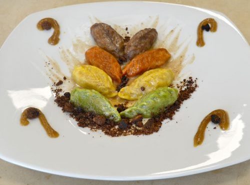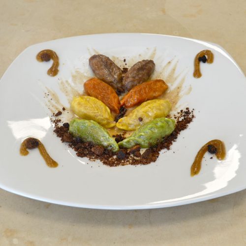 CORSI PER CUOCO PROFESSIONISTA | PRIMO PIATTO CARAMELLE DI PASTA FRESCA AL RIPIENO D’ANATRA CON SALSA ALLE CASTAGNE, GRANELLA AL CACAO AMARO E NOCI DI MACADAMIA, COMPOSTA ALL’UVA E CARDAMOMO. DI JESSICA