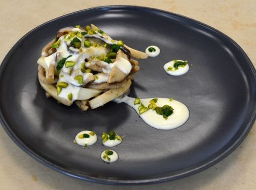 CORSI CUCINA PROFESSIONALE | PRIMO PIATTO PASSATELLI CON FARINA DI CASTAGNE AI FUNGHI PORCINI DEL PIEMONTE CON SALSA AL CASTELMAGNO D.O.P., PISTACCHI DI BRONTE D.O.P. E OLIO EVO BIO AL PREZZEMOLO –