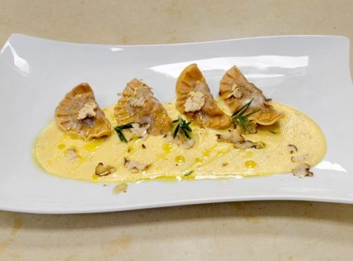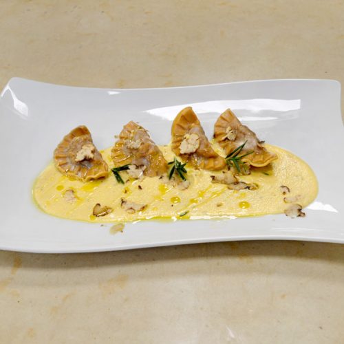 CORSO PER CUOCO | PRIMO PIATTO MEZZE LUNE D’AUTUNNO DI MANOLO MORETTI DIPLOMATO CORSO DI CUOCO PROFESSIONISTA INGREDIENTI PER 4 PERSONE: Ingredienti per la pasta: – 70 g di farina 00 – 30