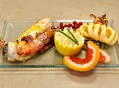 CORSO DI CUCINA PROFESSIONALE | SECONDO PIATTO IL GIGLIO DI TONY DI ANDREA FERRANTE DIPLOMATO CORSO DI CUOCO PROFESSIONISTA INGREDIENTI PER 4 PERSONE: – 4 filetti di spigola – 4 gamberoni – 4 calamari – 2