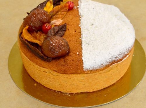 CORSO DI PASTICCERE PROFESSIONISTA | DESSERT TORTA DOLCE AUTUNNO DI IRENE ZAFFANELLA DIPLOMATA CORSO DI PASTICCERE PROFESSIONISTA INGREDIENTI PER LA PREPARAZIONE: Per la montata ai marroni: – 200 gr di burro – 150