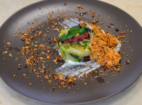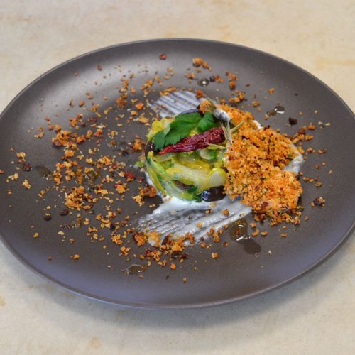 CORSO DI CUCINA PROFESSIONALE | SECONDO PIATTO ALICI GRATINATE CON PEPERONI “CRUSCHI” DI SENISE IGP, SU FONDUTA DI PECORINO CANESTRATO DI MOLITERNO IGP E CONTORNO DI SCAROLA CON OLIVE “ORTICI”. DI