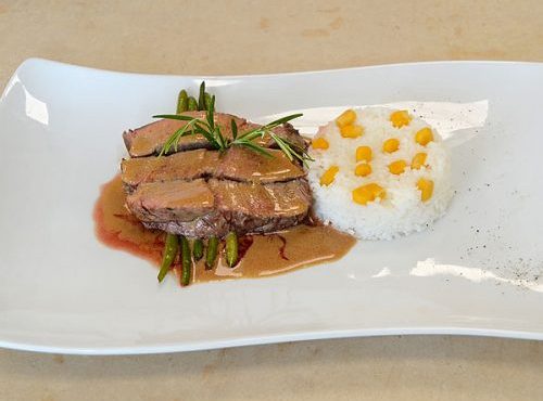 CORSO DI CUCINA | SECONDO PIATTO FILETTO DI MANZO CON SALSA DELLA FESTA E RISO DI MICHELLE MAQUILING DIPLOMATO CORSO DI CUOCO PROFESSIONISTA INGREDIENTI PER 4 PERSONE: Ingredienti basi: – filetto di