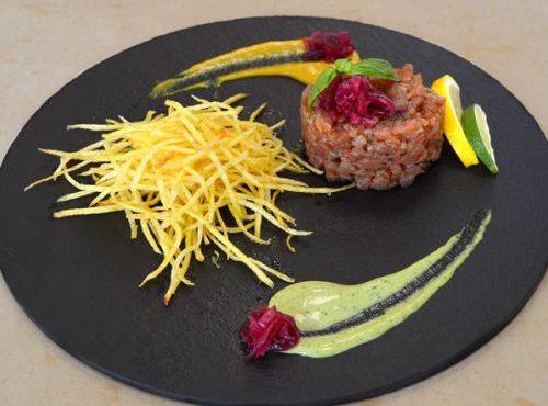 CORSO DI CUCINA | SECONDO PIATTO TARTARE DI TONNO CON CHIPS CROCCANTI DI TOMMASO PARASUCO DIPLOMATO CORSO DI CUOCO PROFESSIONISTA INGREDIENTI PER 4 PERSONE: Ingredienti per le tartare: – Tonno fresco 280gr –
