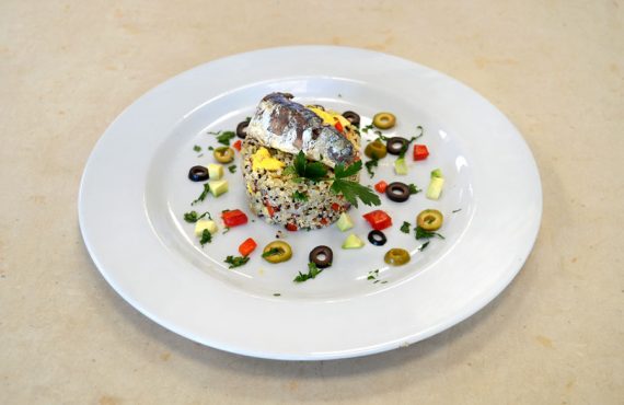 CORSO CUOCO | SECONDO PIATTO INSALATA DI QUINOA CON PESCE E VERDURA DI CARMEN RAMIREZ DIPLOMATA CORSO DI CUOCO PROFESSIONISTA INGREDIENTI PER 4 PERSONE: Ingredienti base: – 100gr mix di quinoa – pesce