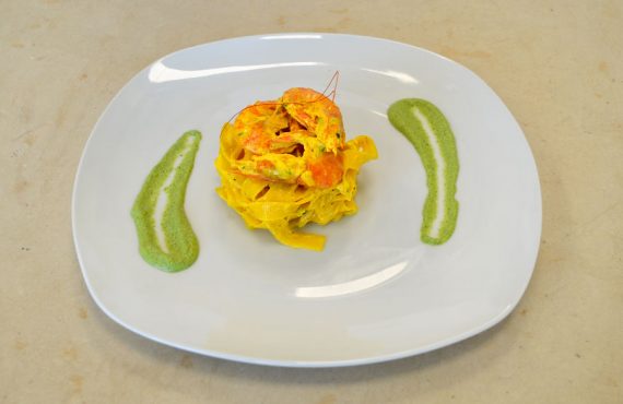 CORSO CUOCO | PRIMO PIATTO FETTUCCINE CON PANNA, ZAFFERANO, ZUCCHINE E GAMBERETTI DI MARIA VALERIA GALLO DIPLOMATA CORSO DI CUOCO PROFESSIONISTA INGREDIENTI PER 4 PERSONE: Ingredienti per la pasta : –