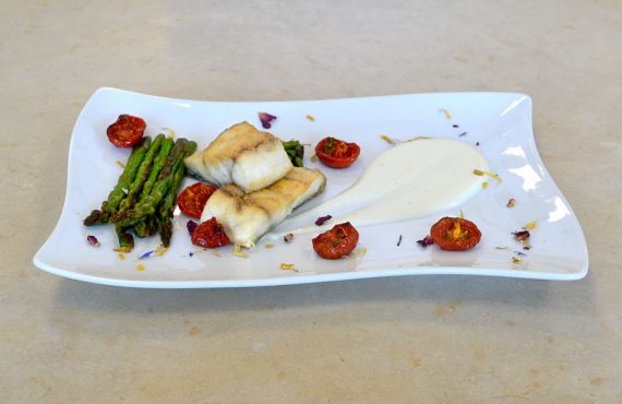 CORSO DI CUOCO | SECONDO PIATTO TRANCIO DI RICCIOLA SU CREMA DI BURRATA E ASPARAGI FRESCHI E POMODORINI CONFIT DI ANA AURICA IGNAT DIPLOMATA CORSO DI CUOCO PROFESSIONISTA INGREDIENTI PER 4