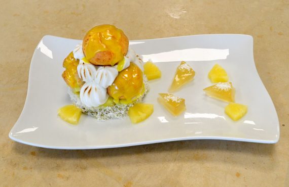 CORSO DI PASTICCERE | DESSERT DOLCE CON BIGNÉ ANANAS E CREMA DI SAMANTHA LARIBLE LOV DIPLOMATA CORSO DI PASTICCERE PROFESSIONISTA INGREDIENTI PER 4 PERSONE: Per pasta frolla tipo sablé: – 500
