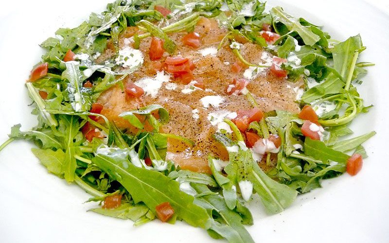 Preparare un composto con il sale, lo zucchero e il pepe. Depositare il salmone in una pirofila, cospargerlo con il composto e lasciarlo riposare per almeno 24 ore. Trascorse 24 ore passare il salmone sotto acqua corrente, successivamente porlo su un piatto e aggiungere la salsa all’erba cipollina.